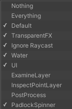 User Layer 8: ExamineLayer (Doesn't need to be added to objects, referenced in code)