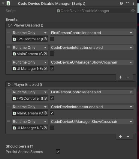 3. I disable the **CodeDeviceInteractor** when the player is disabled