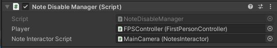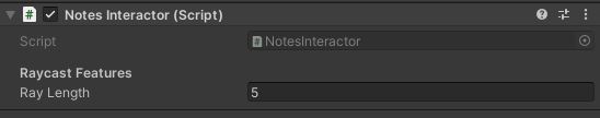 * **Note Interactor Script**: Add the **Main Camera** here (Or the object the **NotesInteractor** script is located)
