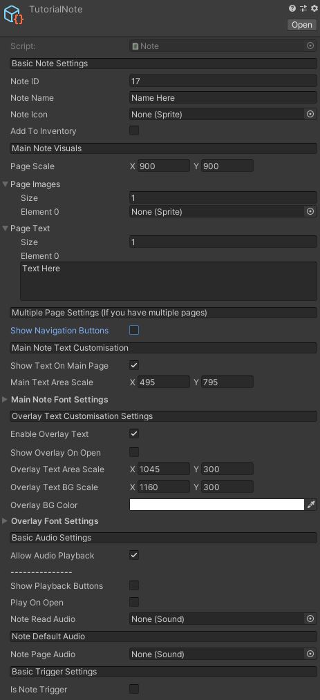 * **Add To Inventory:** This is a boolean to tick if you want to add the note to your inventory when first read