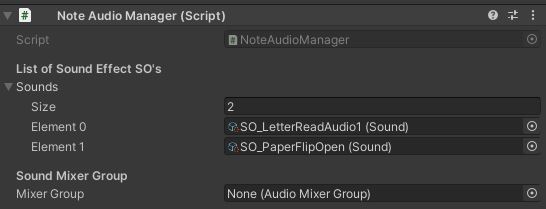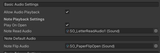 * **Note Read Audio:** The ScriptableObject from the SO folder can be added here