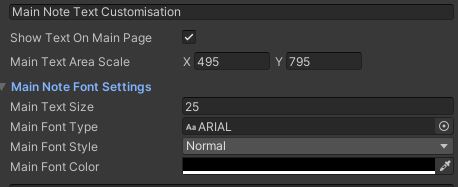 * **Main Text Area Scale:** This is the scale of the area that will show your text on the note, adjust this setting to position the text more to your liking.